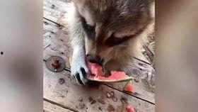 浣熊偷哈密瓜吃的视频,萌态百出引网友热议